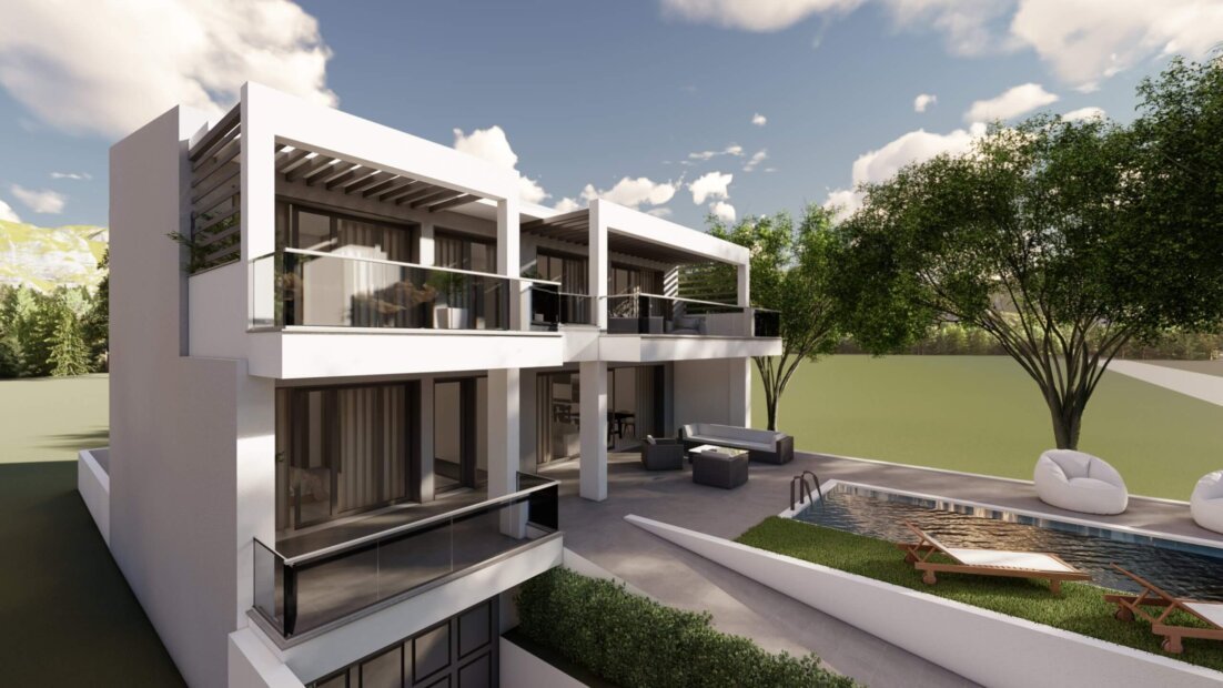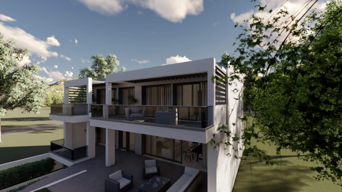 Парцелът се намира в тихата и спокойна част на Паралия Ставрос, където няма много заведения и магазини, шум и глъч от туристи. Едновременно с това за две минути пеша можете да почуствате оживената атмосфера на курортното градче и забавленията, които предлага. Плажната ивица пред имота е с фин пясък и широчина от 50 м. Къщите ще бъдат с окачена фасада, алуминиева дограма с външни ролетни щори, изградени бани, кухни и всичко необходимо, включително озеленяване и напоителни системи за пълноценна ваканция. Разполага със собствен басейн с целогодишно отопление.